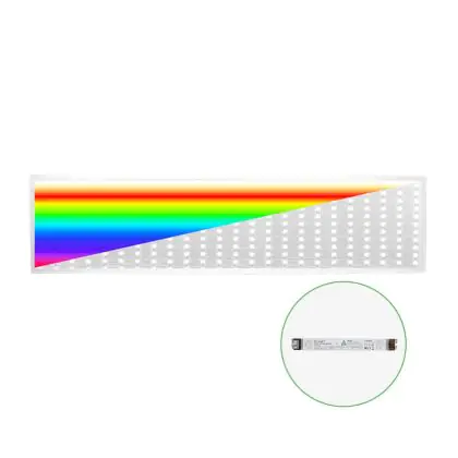 Das LED Panel Backlit 40W 3935lm 827-865 CCT + RGB | 120x30cm - UGR ist ein modernes LED-Panel, welches Licht in der Farbtemperatur 2700K - 6500K Tunable White + RGB ausstrahlt und mit einer langen Lebensdauer punktet. Mit dem hochwertigen Panel, welches ideal als Allgemeinbeleuchtung verwendet werden kann, sparen Sie nicht nur Energiekosten, sondern steigen auch auf eine langlebige und flackerfreie Lichtlösung um.