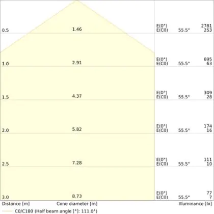 Das LED-Bulkhead kommt mit der Farbtemperatur 3000K - 4000K CCT daher. Als Faustregel gilt: Je niedriger der Kelvinwert, desto gemütlicher wirkt das Licht.