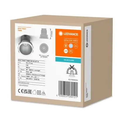 Wir von BeleuchtungDirekt haben mit dem LED-Einbauspot von Ledvance gute Erfahrungen gemacht. Daher bieten wir Ihnen für dieses Produkt eine Garantie von 3 Jahre an.