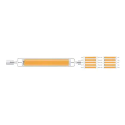 Die Mehrfachpackung 10x Philips Corepro LED Lineair R7s 118mm 7.2W 810lm - 830 Warmweiß | Ersatz für 60W ist eine effiziente R7s LED-Lampe und der perfekte Ersatz für Ihre konventionelle Halogen-Stablampe mit 60W. Zudem strahlt sie Licht in der Farbtemperatur 3000K - Warmweiß aus und punktet durch eine lange Lebensdauer.