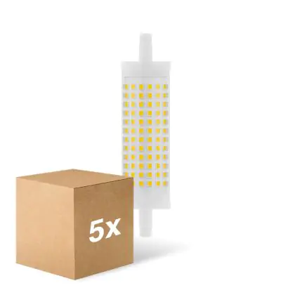 Die Mehrfachpackung 5x Ledvance LED Line R7s 118mm 18.5W 2452lm - 827 Extra Warmweiß | Ersatz Für 150W ist eine effiziente R7s LED-Lampe und der perfekte Ersatz für Ihre konventionelle Halogen-Stablampe mit 150W. Zudem strahlt sie Licht in der Farbtemperatur 2700K - Extra Warmweiß aus und punktet durch eine lange Lebensdauer.