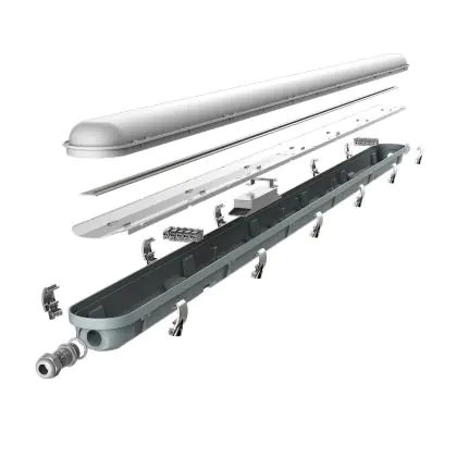 Die Noxion LED-Deckenleuchte Poseidon V3.0 ist ein idealer Ersatz für herkömmliche Leuchtstofflampen. Dank ihrer hohen Effizienz von bis zu 140 Lumen pro Watt spart die Poseidon V3.0 bis zu 50 % Energie. Diese wasserdichte LED-Leuchte hat die Schutzklassen IP65 und IK10, was bedeutet, dass die Leuchte sowohl im Innen- als auch im Außenbereich eingesetzt werden kann. Sie ist auch ideal für nasse und / oder staubige Bereiche und somit perfekt für den Einsatz in Lagerhallen, auf Parkplätzen oder in Tunneln. Der halbtransparente Prismadiffusor sorgt für eine angenehme Lichtpräsentation. Ein weiterer Vorteil ist die Durchgangsverdrahtung, so können Sie ganz einfach mehrere Produkte miteinander verbinden. Wenn Sie Ihre TL-Leuchten durch die Poseidon LED-Leuchte ersetzen, werden Sie enorme Einsparungen bei den Energie- und Wartungskosten und garantieren eine kurze Amortisationszeit.