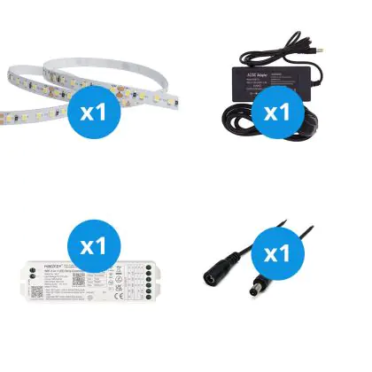 Der große Vorteil dieses Komplettsets ist, dass Sie alles Zubehör haben, das Sie benötigen, um die besten Lichtakzente für Ihr Zuhause oder Ihre Geschäftsräume zu setzen. Sie müssen nicht nach dem richtigen Zubehör suchen, sondern nur alle Elemente miteinander verbinden. Anschließend stecken Sie den Stecker in eine normale Steckdose in Ihrem Haus. Alles dazu erfahren Sie in unserem Installationsblog. Dieses Set enthält: