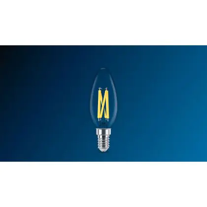 Die Philips MASTER LED E14 Gebogen-tip Kerze Fadenlampe Klar 2.5W 340lm - 922-927 Dim To Warm | Höchste Farbwiedergabe - Dimmbar - Ersatz Für 25W ist eine effiziente E14 LED-Lampe mit Retrodesign und der perfekte Ersatz für Ihre konventionellen 25W Lampen mit E14. Zudem strahlt sie Licht in der Farbtemperatur 2200K - 2700K Dim To Warm aus und punktet durch eine lange Lebensdauer.