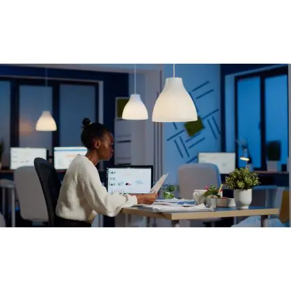 Die E27 LED-Lampe von Philips kann mit der Farbtemperatur 3000K - Warmweiß sowohl als Akzent- als auch als Allgemeinbeleuchtung verwendet werden. Als Faustregel gilt: Je niedriger der Kelvinwert, desto gemütlicher wirkt das Licht.