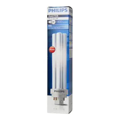 Die Philips PL-C Xtra 4P sind Kompaktleuchtstofflampen mit einer 4-poligen Buchse, einer sehr langen Lebensdauer, sowie unschlagbaren Betriebskosten. Die Lichtleistung ist optimal für einen dauerhaften Einsatz geeignet. Des Weiteren besitzen Philips PL-C Xtra 4P eine erhöhte Lichtausbeute. Philips PL-C Xtra 4P müssen mit einem elektromagnetischen Vorschaltgerät betrieben werden. Philips PL-C Xtra 26W 840 4P sind mit einem G24q-3 Sockel mit 4 Pins ausgestattet und messen 16,4cm.