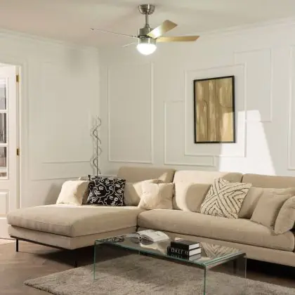Dank seines flüsterleisen Motors sorgt der Ventilator Silent Cygnus Silber 35W 1500lm | Dimmbar für angenehme Luftbewegung ohne störende Geräuschkulisse – ideal in Räumen, in denen Ruhe gefragt ist, etwa im Schlafzimmer oder im Home-Office.