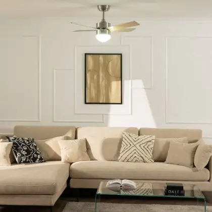 Der Ventilator Silent Cygnus Silber 35W 1500lm | Dimmbar integriert sich unauffällig in verschiedene Einrichtungsstile – von urbanem Minimalismus bis zu klassischen Wohnwelten. Die sauberen Linien und die zurückhaltende Farbgestaltung machen ihn zu einer langlebigen Designlösung.